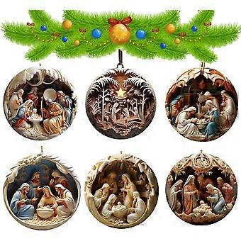 6st Julkrubba Prydnadsföremål, Akryl Julprydnad, Hängande Prydnad Julkrubba Hängsmycke För Jul Religiös Gåva