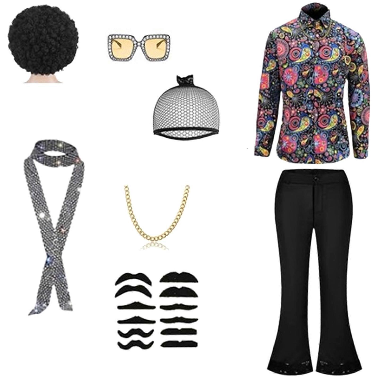 70s Disco Outfits for Men Disco Costume Outfits with Bells Bottom Pants Sunglasses Wigs Necklace 60s 70s 80s Disco Set Set XL