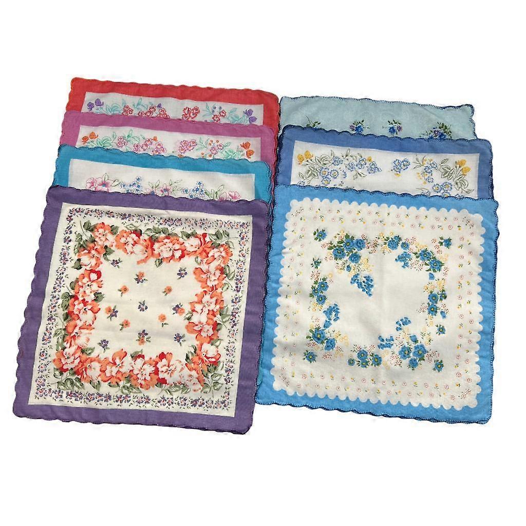 7x Cotton Handkerchief Assorted Color Floral Print Clasc Hankies 30cmx30cm