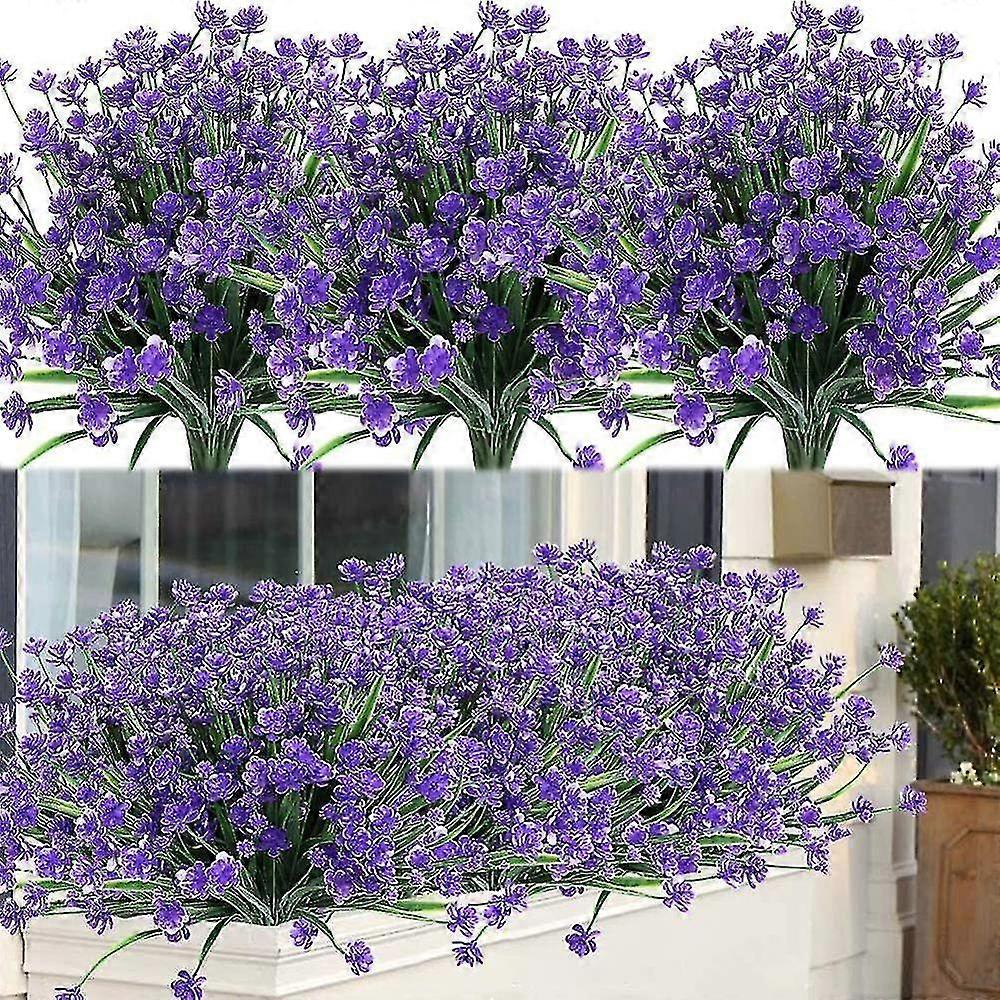 8 Bundles Outdoor Artificial Fake Flowers Shrubs Uv Resistant Plants, Faux Plastic Greenery (purple)