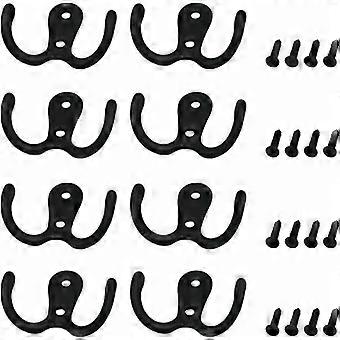 8 pieces Double claw hooks Rustic Retro Handle Hooks with screws for hanging towels Coats - Black