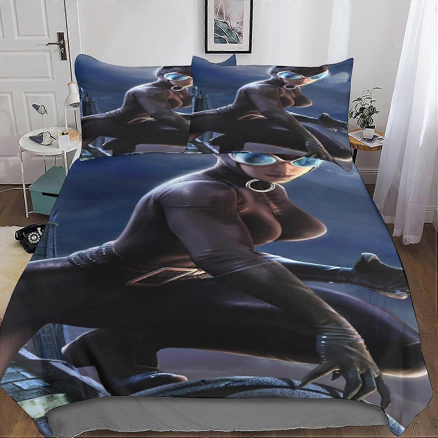 A157 Catwoman Duvet Cover Set 3D Bedding Sets Microfibre Film Role Quilt Cover with Zipper Closure 3 Pieces Set Comforter Cover Double B157