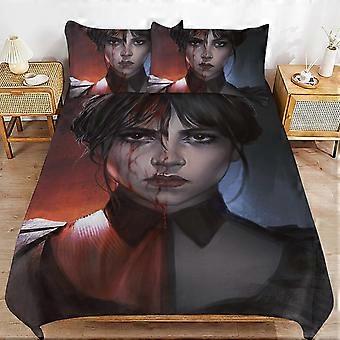 a1656 Wednesday Addams påslakanset, 3-delat sängkläder 86x70" dubbelsidig utskrift dekorativt täcke överdragsset (1 påslakan + 2 kudde sham