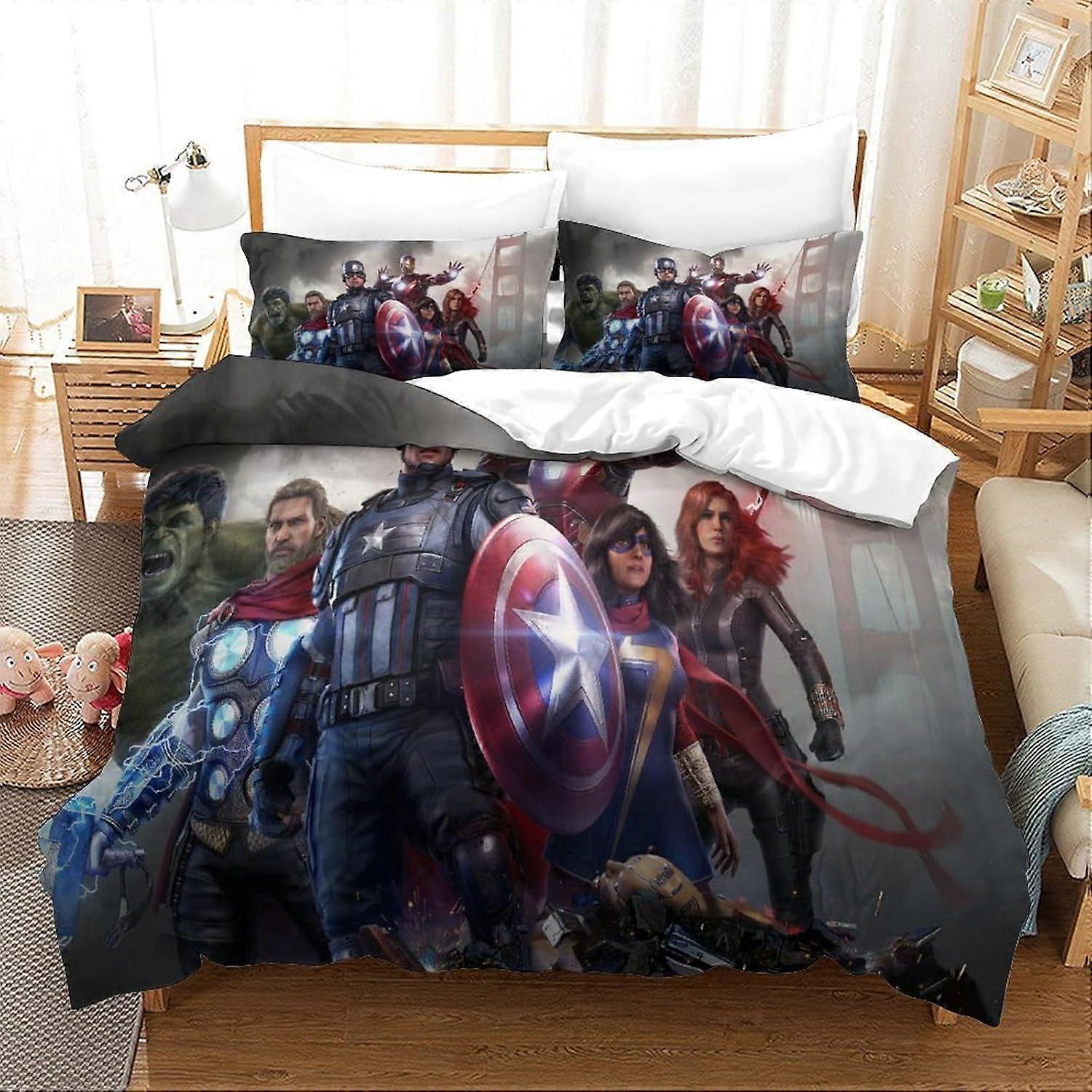 a541 Avengers 3 Piece Set, 3D Printed Bedding, Pillowcase, Hidden Zip, Superheroes Microfibre Duvet Cover for Adults And Children j541