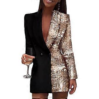 Aftonkavaj Snygg Halvlång Varm Elegant Mode Fest Paljetter Lappverk Färg Kostym Kappa Kvinna Kläder-I lager