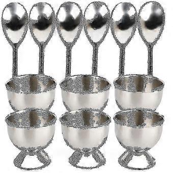 boiled eggs cup eggs holder ,long lasting,strong and durable,unbreakable.Very easy to use.The neat egg cups serves to insulate the heat of the egg The egg spoons are easy cleaning,perfectly rounded not only for the inside of the egg but also for serving a dip.Just right for scooping out all the contents of your healthy boiled eggs.The spoons are curved perfectly to fit the inside of the egg without breaking the shellEasy to storage,the cups stack into each other and so does the topper; Great for keeping your topper set together and for those that want to serve a nice dish but have a smaller kitchen.The neat egg cups serves to insulate the heat of the egg and fit to put any size egg.Use the egg cups and spoons as small serving sets for dips and sauces,great for serving perfect soft boiled eggsEgg Cup Tray Set is perfect for your daily soft-boiled eggs breakfast Enjoy your beautiful egg cup holder set colour:SilverMaterial:stainless steelSize:Size is about 4.6*4.5cmSpoon 12.8*2.3cmPackage Contents:6* egg tray6* spoonOnly the above package content, other products are not included.Note: Light and different displays may cause the color of the item in the picture a little different from the real thing. The measurement allowed error is +/- 1-3cm.