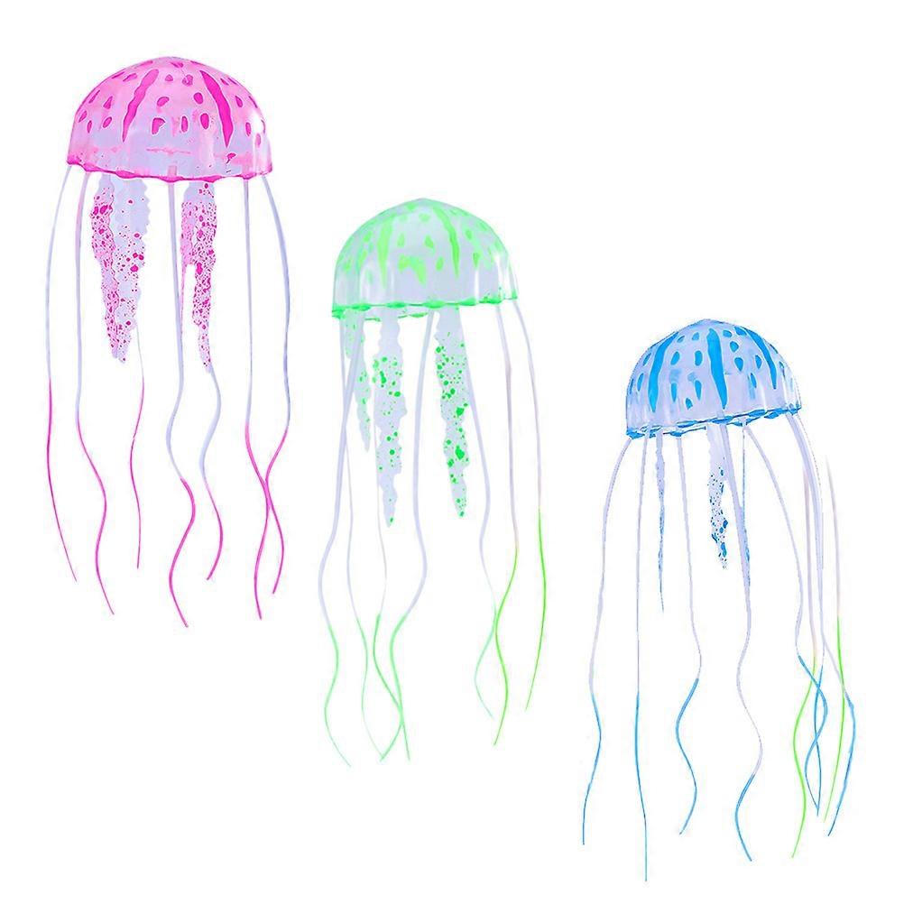 Aquarium Jellyfish Ornament Featuring Glowing Effect Ideal For Tropical Fish In 3Pcs