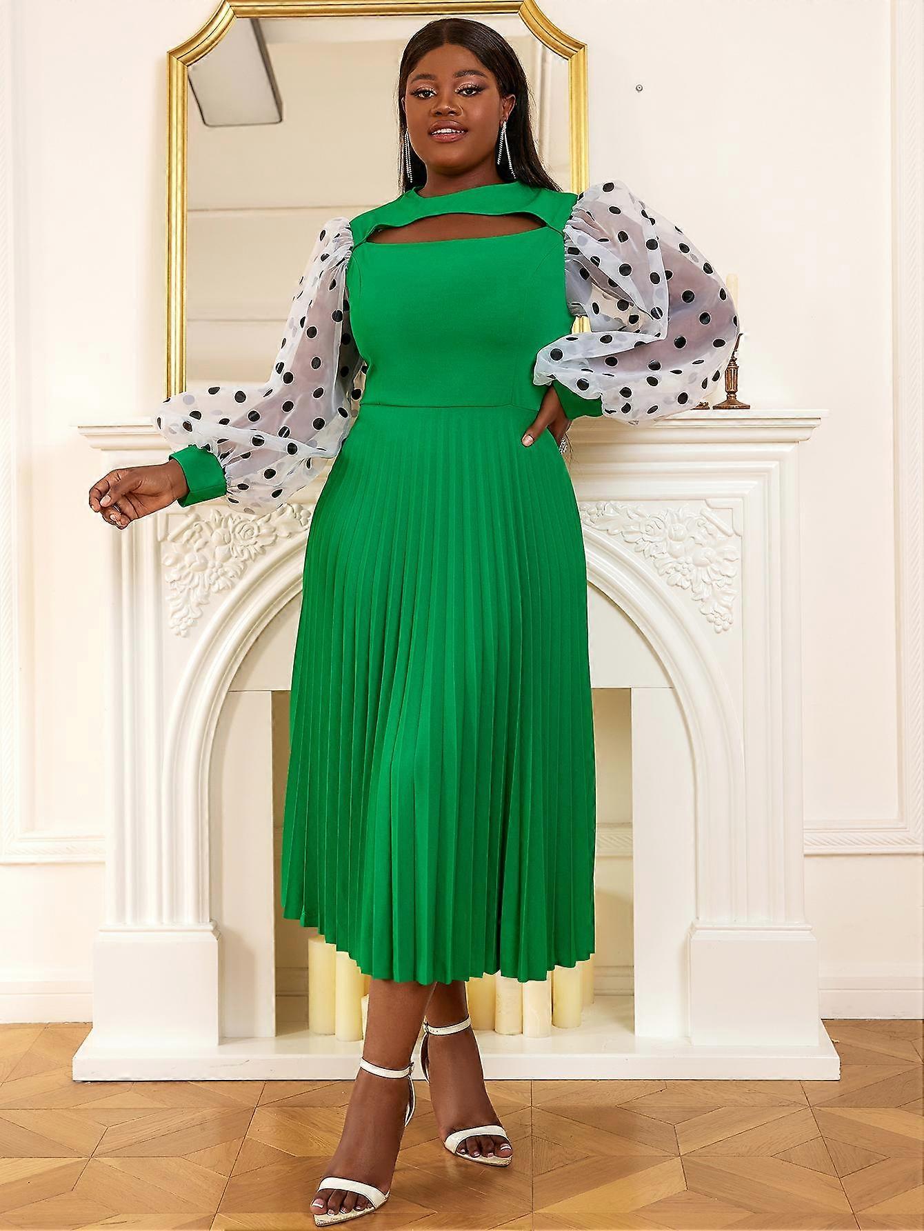 AOMEI Pleated Dresses for Women Patchwork Polka Dot Long Sleeve Cut Out Chest A Line Dresses African Office Ladies Work Wear Date Elegant