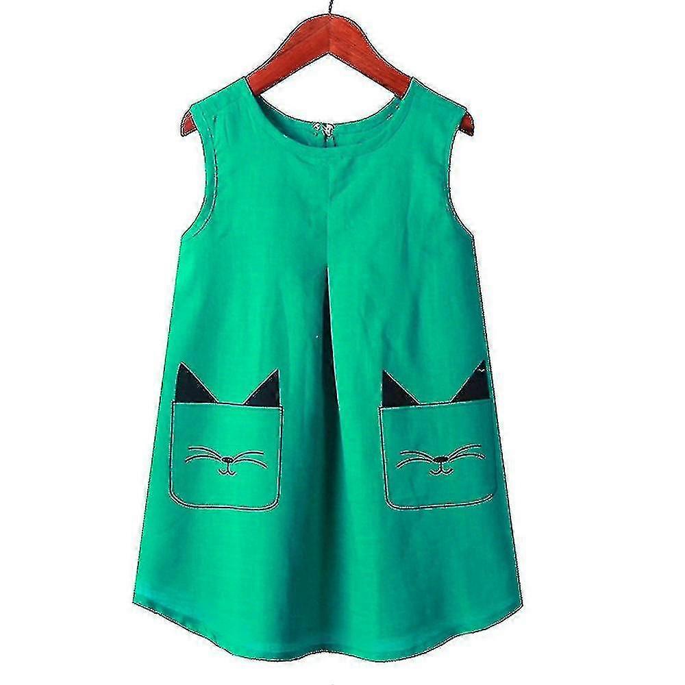 2-14 Years Girls Printed Sleeveless Tank Dress Sundress-c V