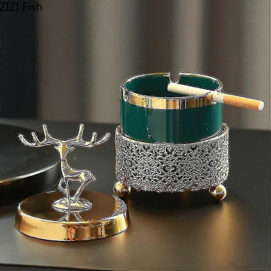 Ashtray With Lid To Decorate The Living Room Elk Emerald Gold Frame Ceramic Ashtray Gift For Boyfrie