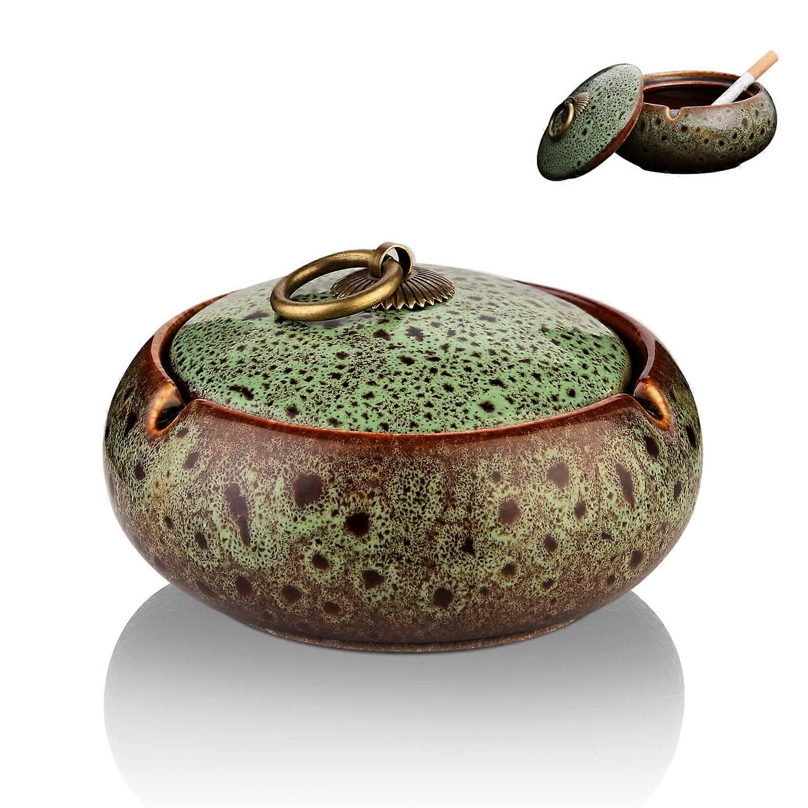 Ashtray with Lids, Ceramic Ash tray for Cigarette, Windproof Ashtray for Outdoor Indoor Use, Vintage Ashtray for Home