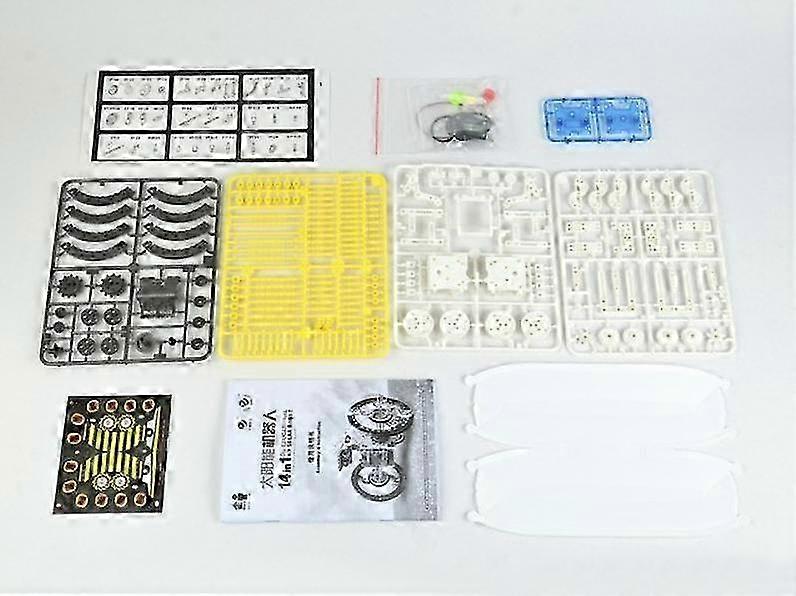 Features: - - Can change different robot modeling- More exploration by children- More solar energy theory will be learnt- Increase emotional communication for parents and kids Specifications: - Package Dimensions(L W H): 31cm x 20.5cm x 6. 5cm- Net Weight:Approx. 0. 28kg- Gross Weight: Approx. 0. 48kg- Material: Plastic- Age: 10 Package Contents: 1 x Assembling D.I.Y Solar Robots 14 in 1 Note: Due to the light and screen setting difference, the item's color may be slightly different from the pictures. Please allow slight dimension difference due to different manual measurement.