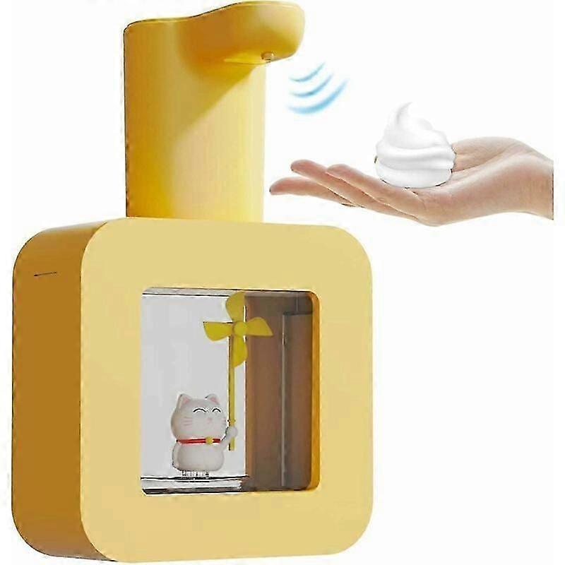 Automatic Soap, Cute Cat Touchless Soap with Night Light, 400ML Kids Soap, Refillable Wall Mounted Soap for Kitchen, Bathroom, School, Office (Yellow