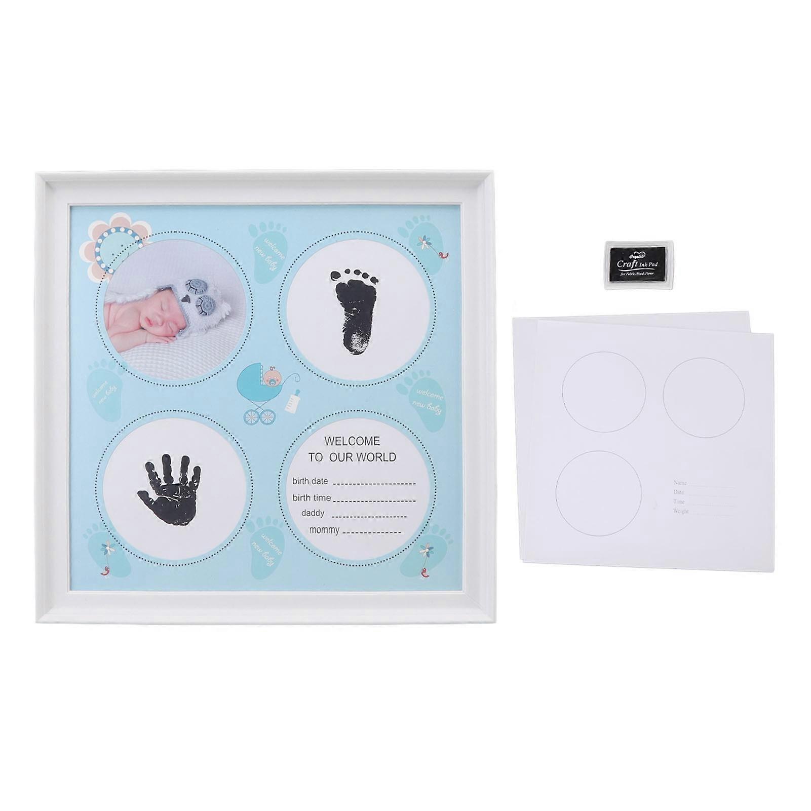 Baby Handprint Footprint Kit for Newborn Boys Girls Wear Resistant Plastic Density Board Baby Print Frame Kit for Display Blue