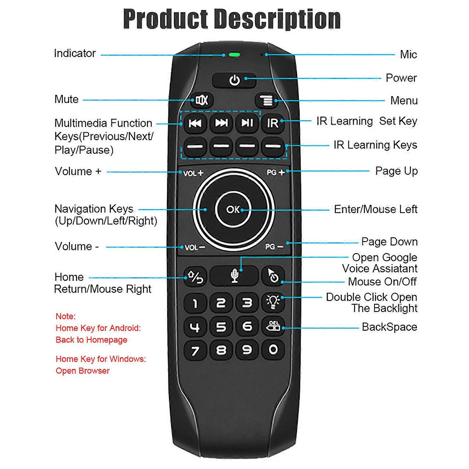 Backlit 2.4G Air Mouse Wireless Keyboard - Voice Control & 6-Axis Motion for Smart TV