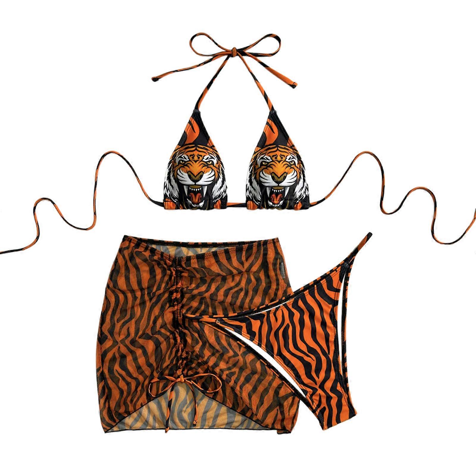 Women Bathing Suit Animal Print Swimwear 3 Pcs Swimsuit with Cover Up Ladies Backless Swimming Costume Set Color S