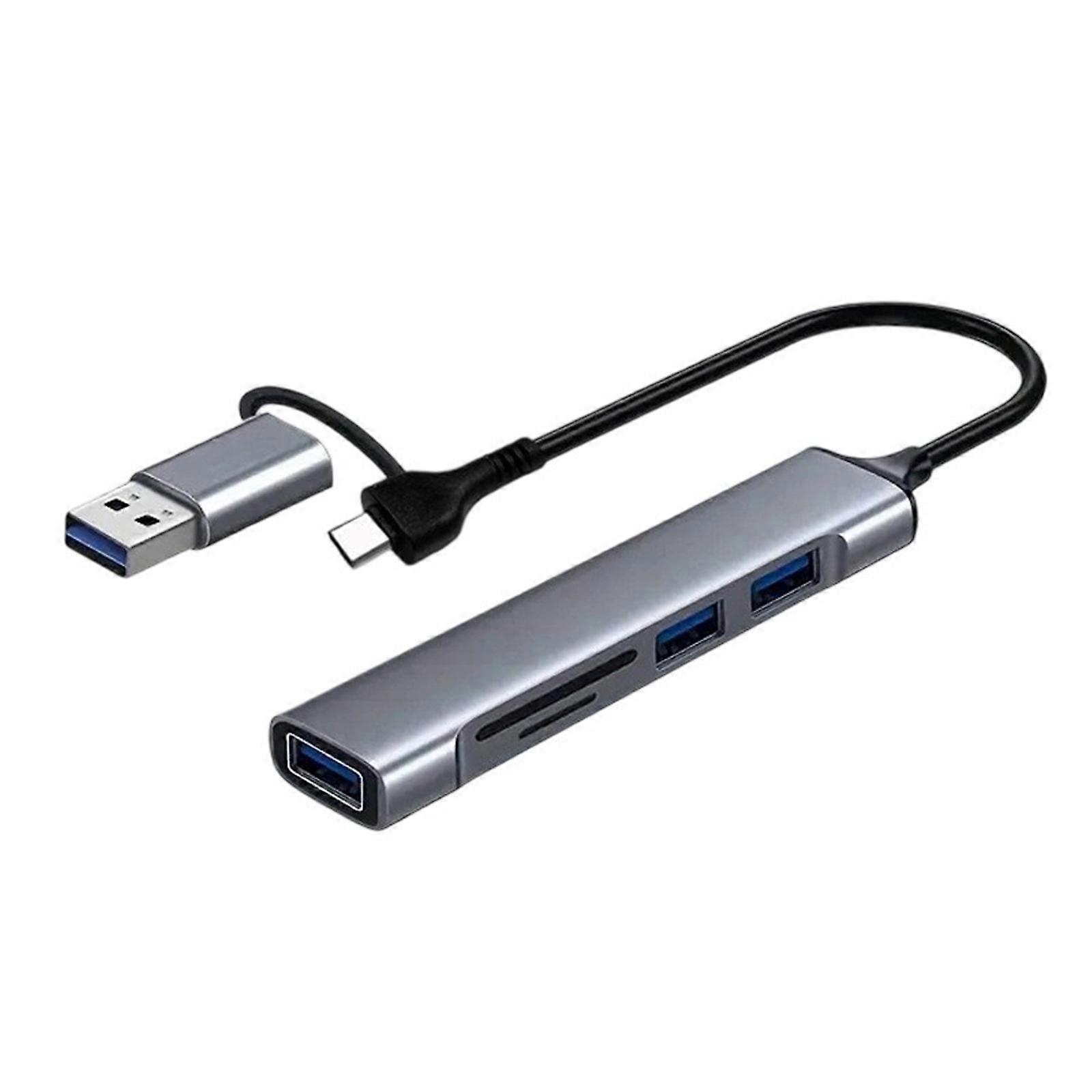 Portable 5 In 1 USB+Type C Adapter Card Reader Direct Plug Multi Port Converter Portable Data Fast Read Extension Multicolor