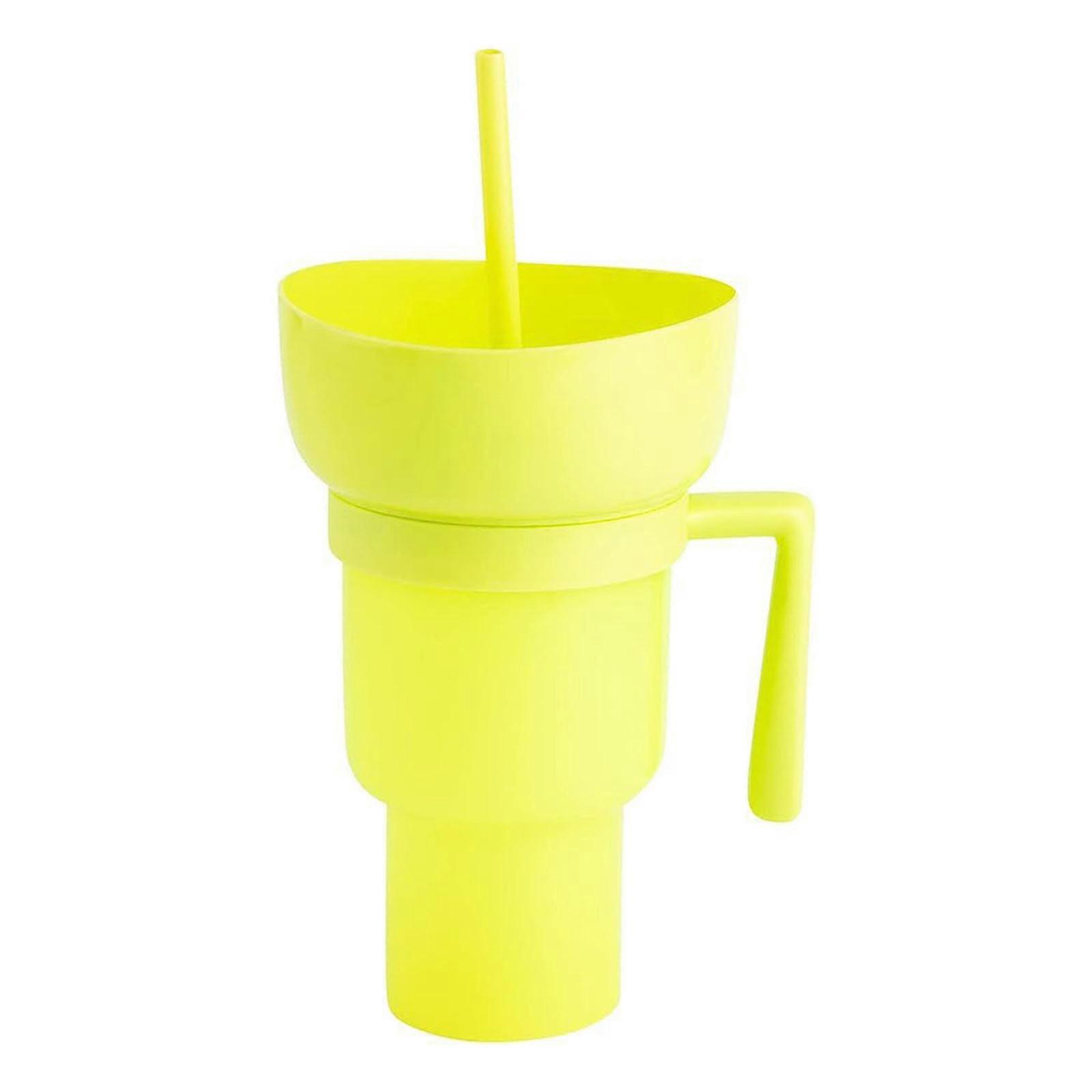 Portable Popcorn Drink Cup Multifunctional Split Cup Snack Tumblers Reusable Popcorn Beverage Cup Plastic Material Yellow