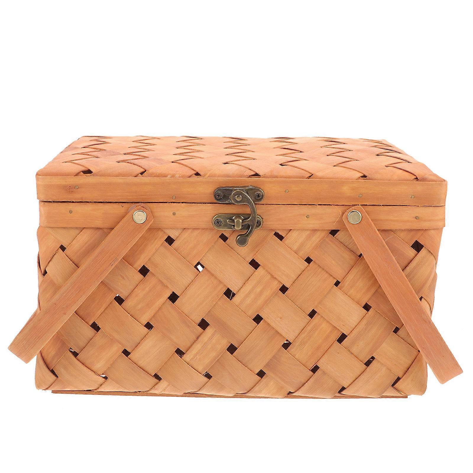 Portable Wood Woven Picnic Basket Perfect For Fruits Storage And Household Container Use 1Pcs