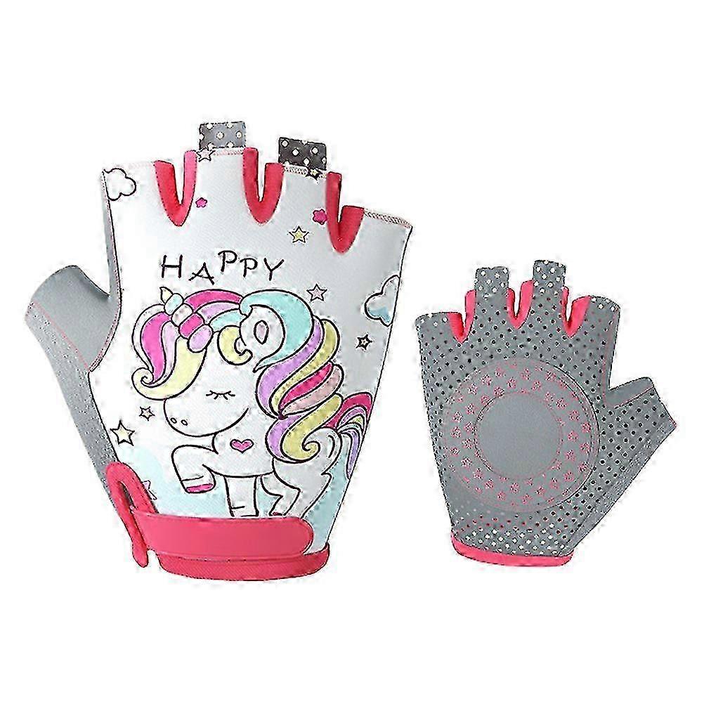 Kids Cycling Gloves Cute Cartoon Half Finger Bike Gloves Non Slip Mitten Shock Absorbing Breathable Sports Gloves for Boys Girls