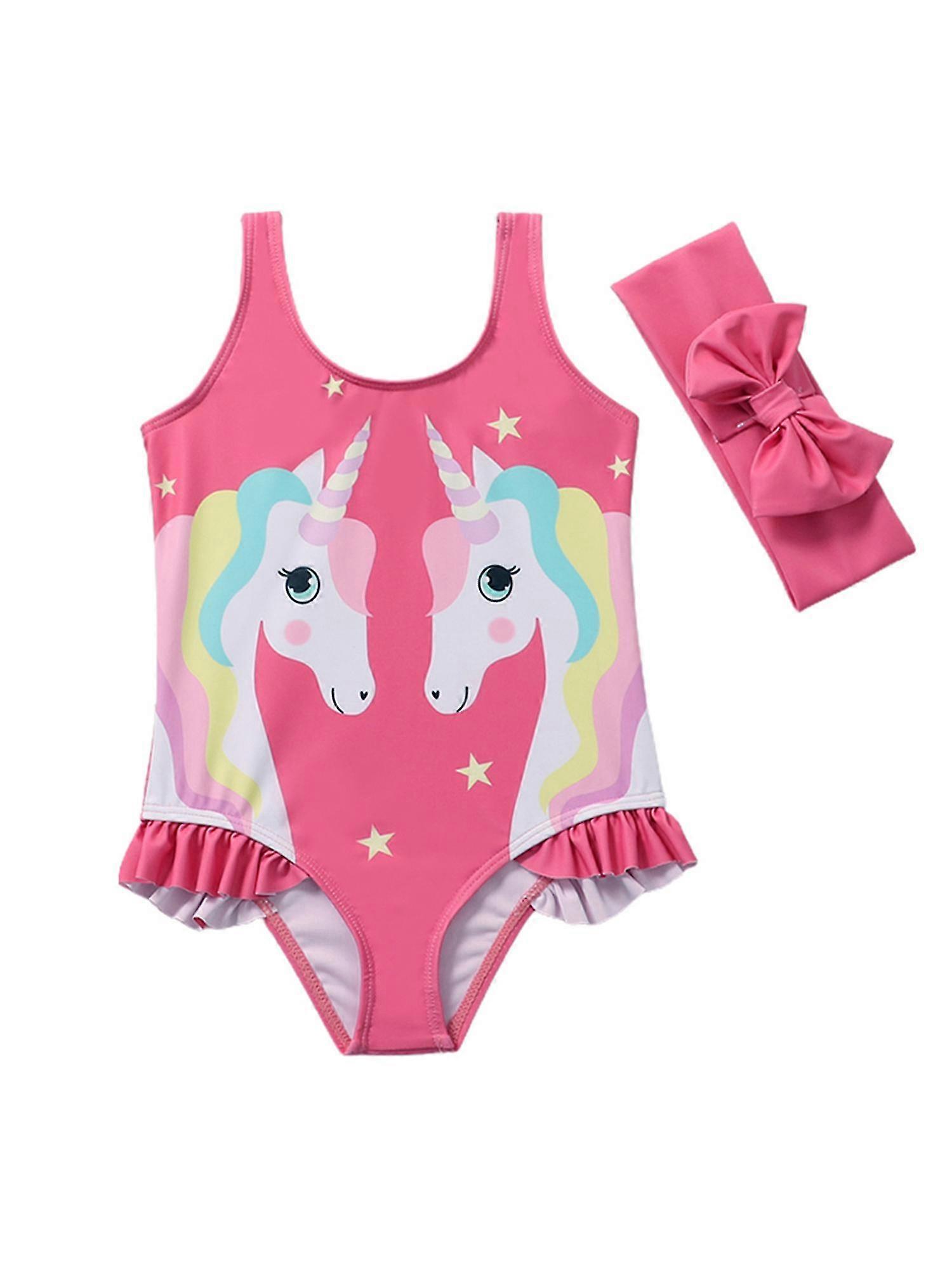 Kids Girls One Piece Swimwear Bikini Bow Headband Set