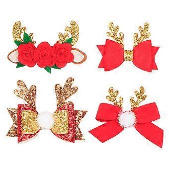 The and simple hair clip in antler shape with Christmas design will attract more attentions. You kids will shine in the crowd when you are wearing those hair pins. Fine workmanship make it more real. These hair clips can be applied as decorations for wedding, party, daily life, meeting or appointment. Features - ColorAssorted Color - Marterial: Glitter cloth, plating clip . - Size: About 8.5x7x2cm. - The item includes 4 Style : Flower ears, Hair sequin bow, Hair bow, Small bow, 1 for Each. - Comfortable cloth and metal material, durable and portable. Fine workmanship make it more real. - Stylish and nice-looking Christmas elements ensure their popularity and practicality. - Good grip that easy to clip and can hold your hair. - Beautiful and elegant appearance can match with your kids different dress-ups, make you girls more attractive. - A good accessory for kids girls, good gift for you daughter and your friends. Package list: 4 x christmas hair clips