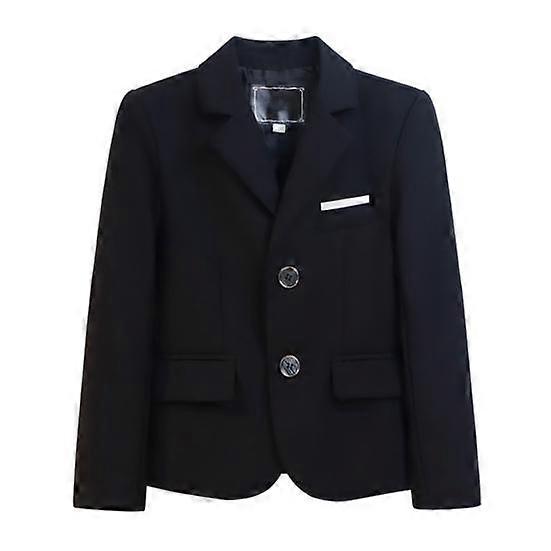 Kids Boys Gentleman Blazer Black Lapel Long Sleeve Suit Two Button Jacket Outwear for Weddings Parties 5-6 Years