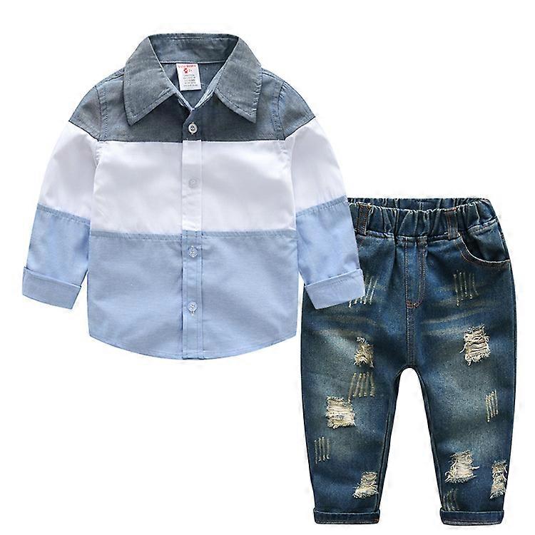 Children Boys Clothing Sets 2021 FALL Casual Plaid Tops shirt +Jeans 2 Pieces Handsome Kids Boys Clothes Outfits