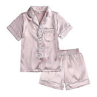 Barn Småbarn Baby Flicka Pojke Satin Pyjamas Set Lång Kortärmad Button-down Pyjamasskjorta Topp + byxor Underdelar Sovkläder Outfits