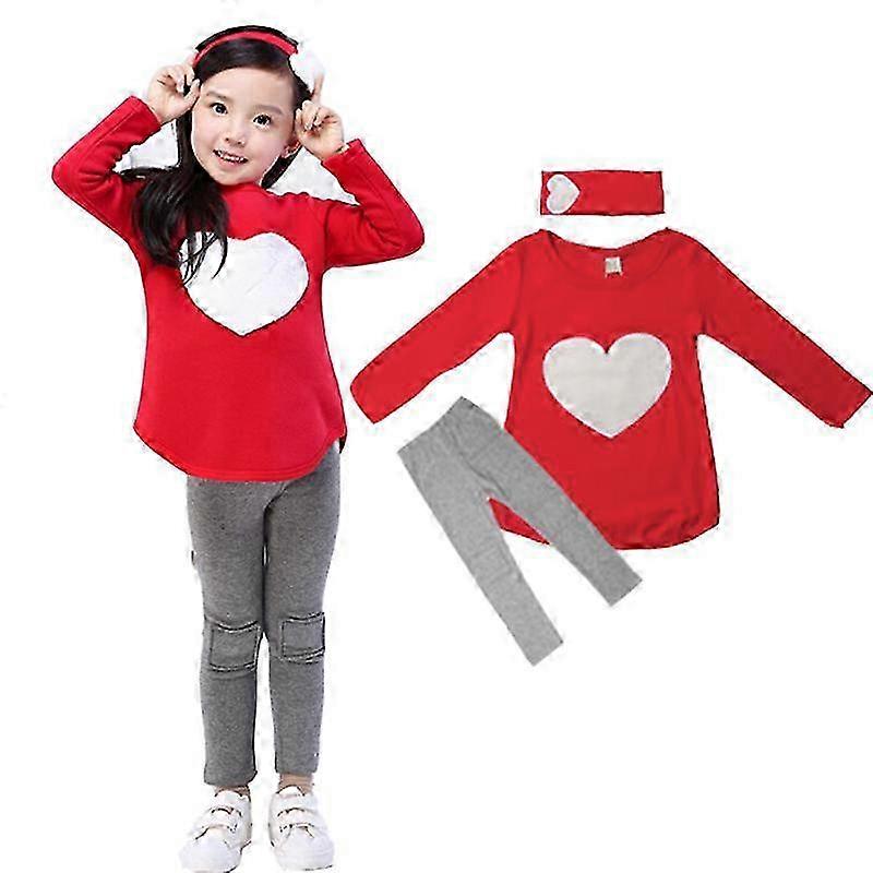 Kid Girl Heart Long Sleeve Top Pants Headband Set Casual Outfit Clothes 2025