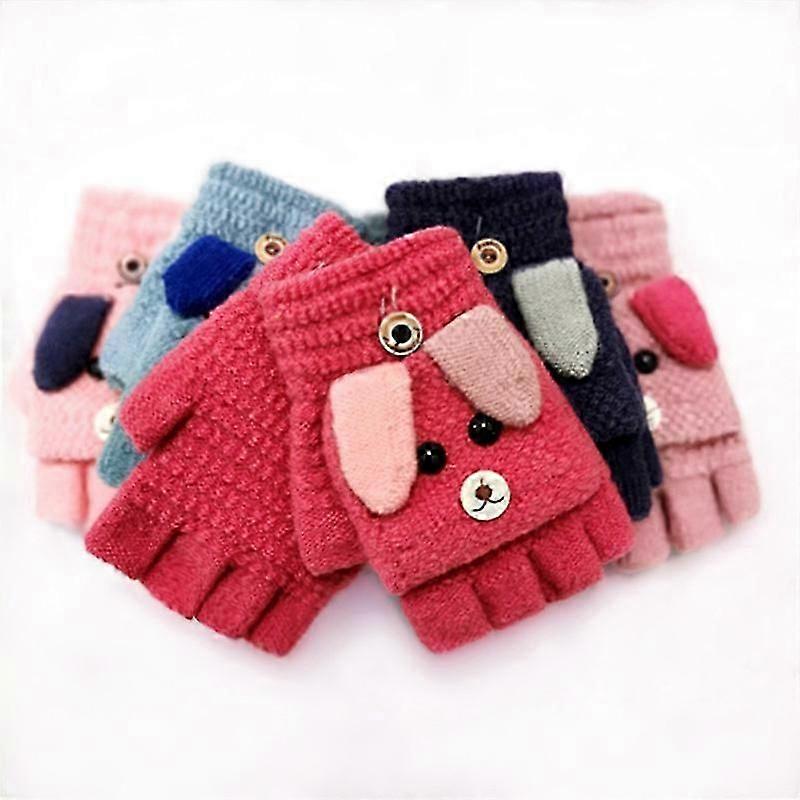 Children's gloves autumn and winter knitted flap half finger gloves men and women students cute thickened velvet warm writing gloves (D-F-4)