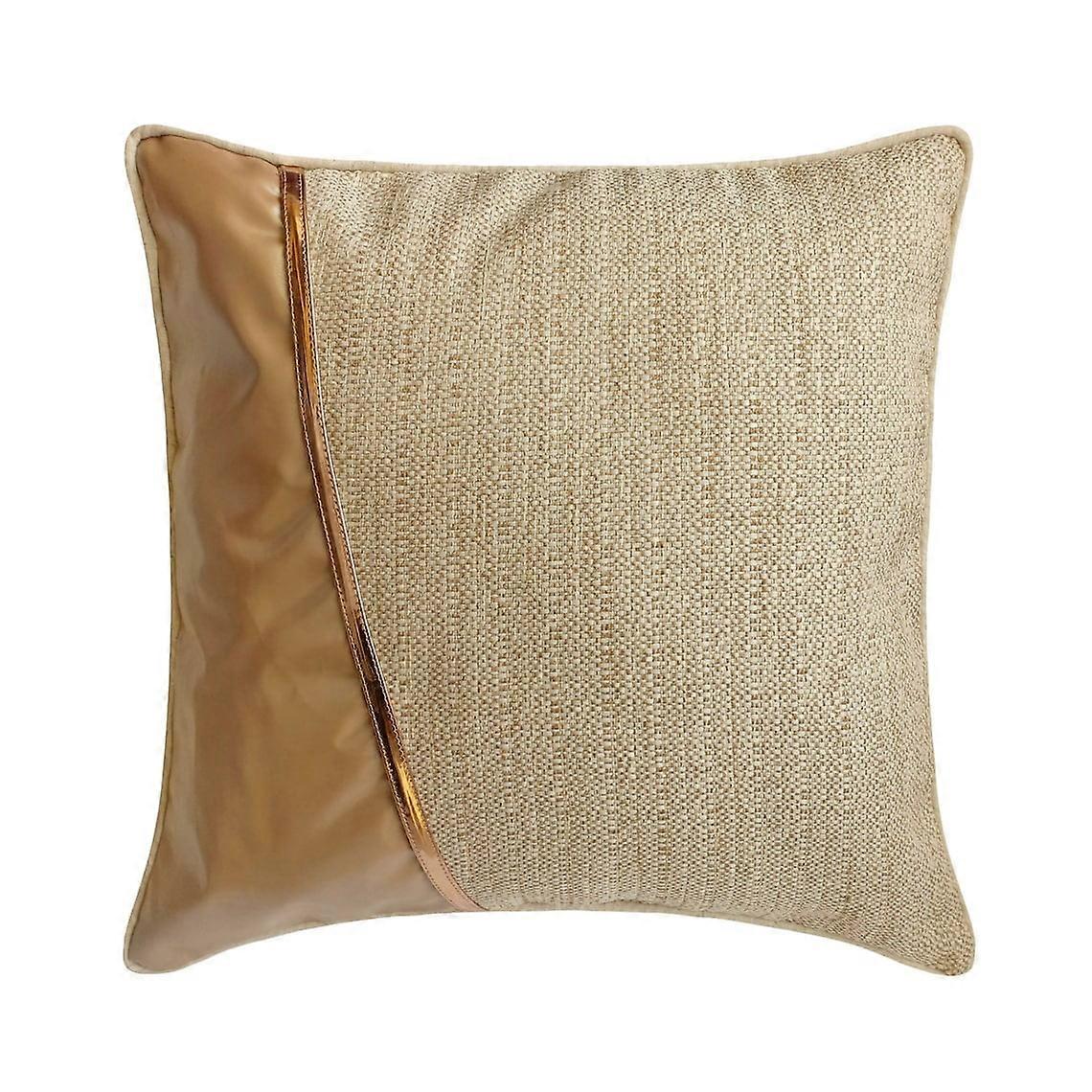 Beige & Gold Pillow Covers 16"x16" (40x40 cm) Set of 2, Jute & Faux Leather Patchwork, Modern Solid Color Decor for Sofa