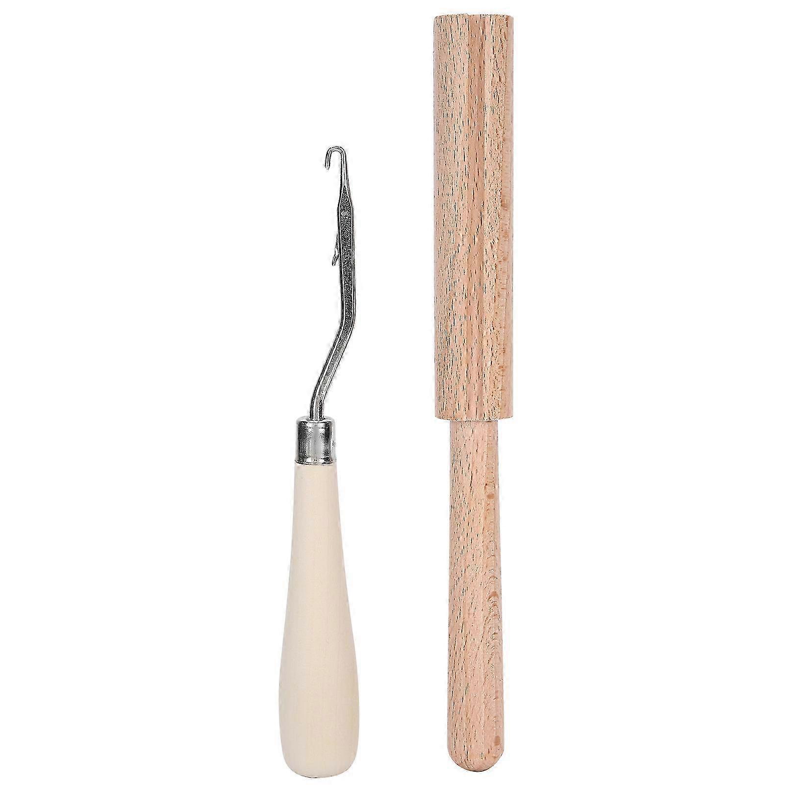 Bent Latch Hook Tool DIY Hand Made Carpet Crochet Needle Wooden Thread Cutter Set