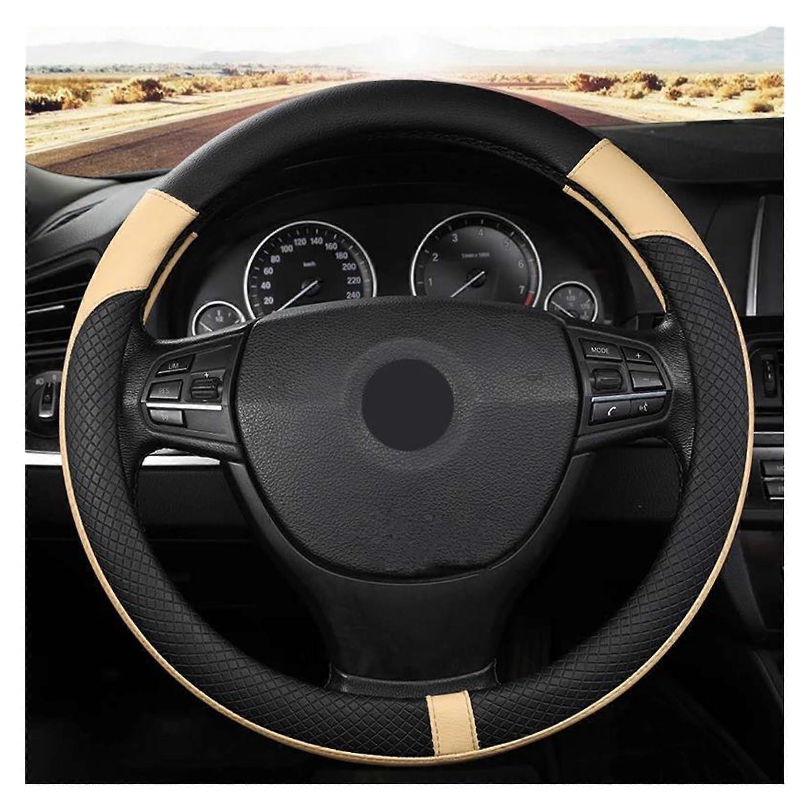 Car Steering Wheel Cover Universal Fit Non-Slip Breathable Beige Steering Wheel Sleeve