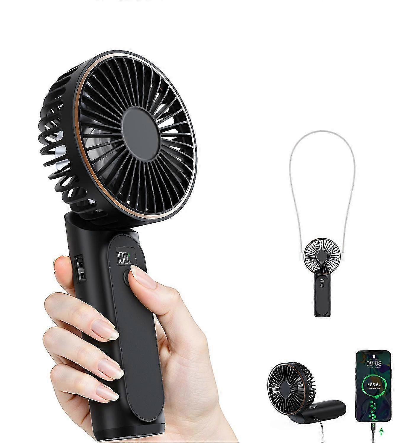 Bistfy 3600mAh Handheld Fan | 6-Speed LED Display, Quiet Foldable 180 Adjustable, USB-C Rechargeable Power Bank for Office/Home/Travel/Outdoor