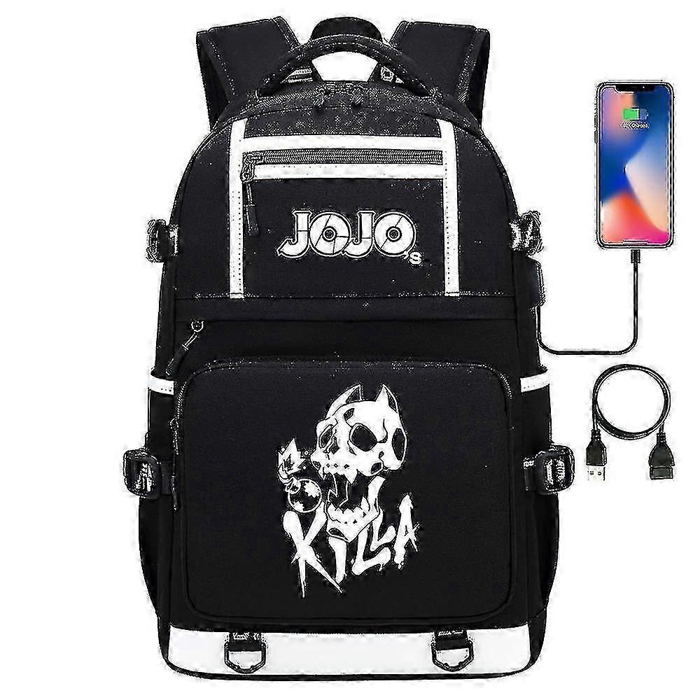 Black Jojo's Bizarre Adventure Usb Port Backpack Bag For School Books, Students, And Outdoor Activities. Shoulder Book Bag Rucksack With Cosplay Desig