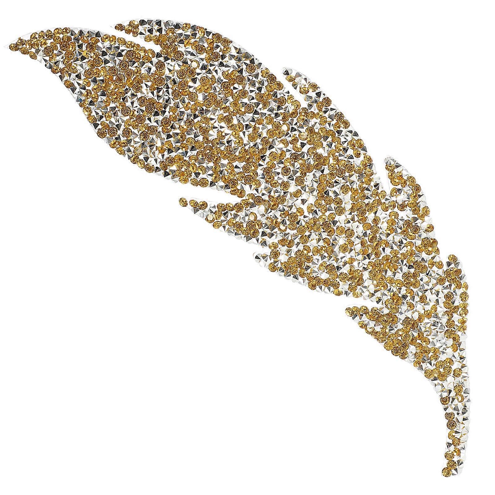 Leaf Shape Rhinestone Patch Design Clothing Accessory 0.3X5X18.3CM Yellow 1Pcs