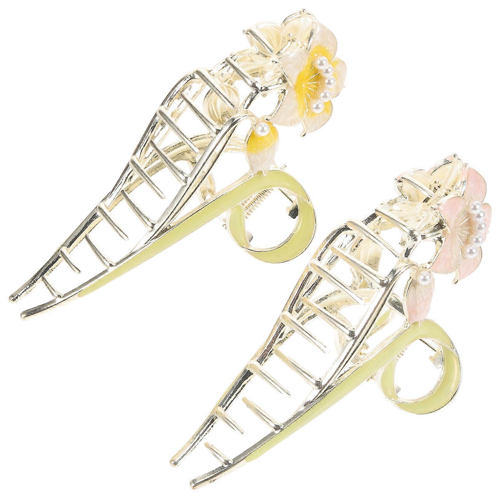 Flower Hair Clips Metal Nonslip For Everyday Use Suitable For Long Thick Hair 2Pcs