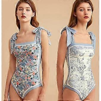 Blommiga baddräkter i ett stycke, vändbar slips axel, baddräkter för magkontroll, badkläder med fyrkantig hals