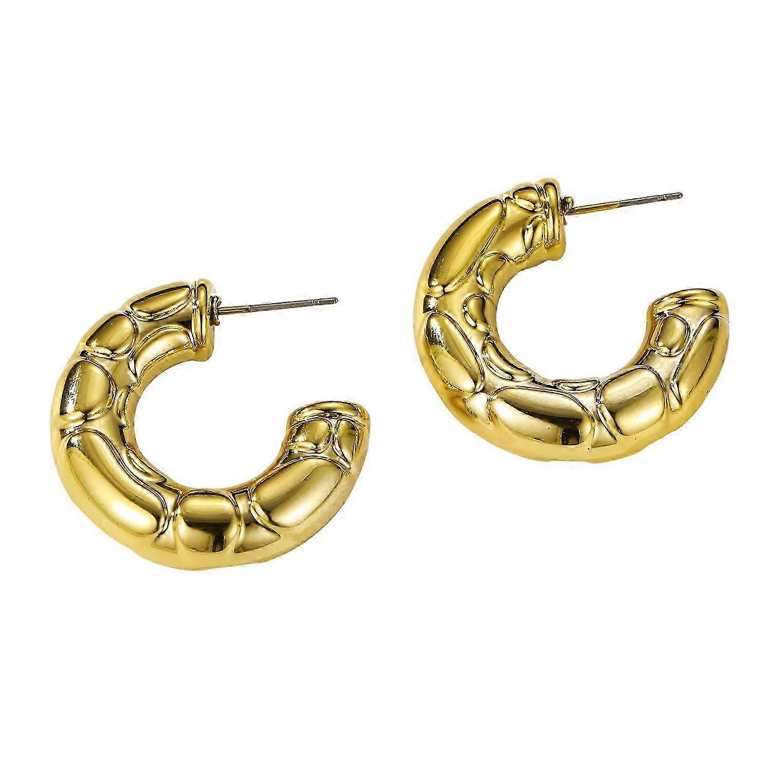 BoSaiD 1 Pair Huggie Earrings C-shape Hollow Tube Solid Color Anti-allergy Electroplated Lightweight