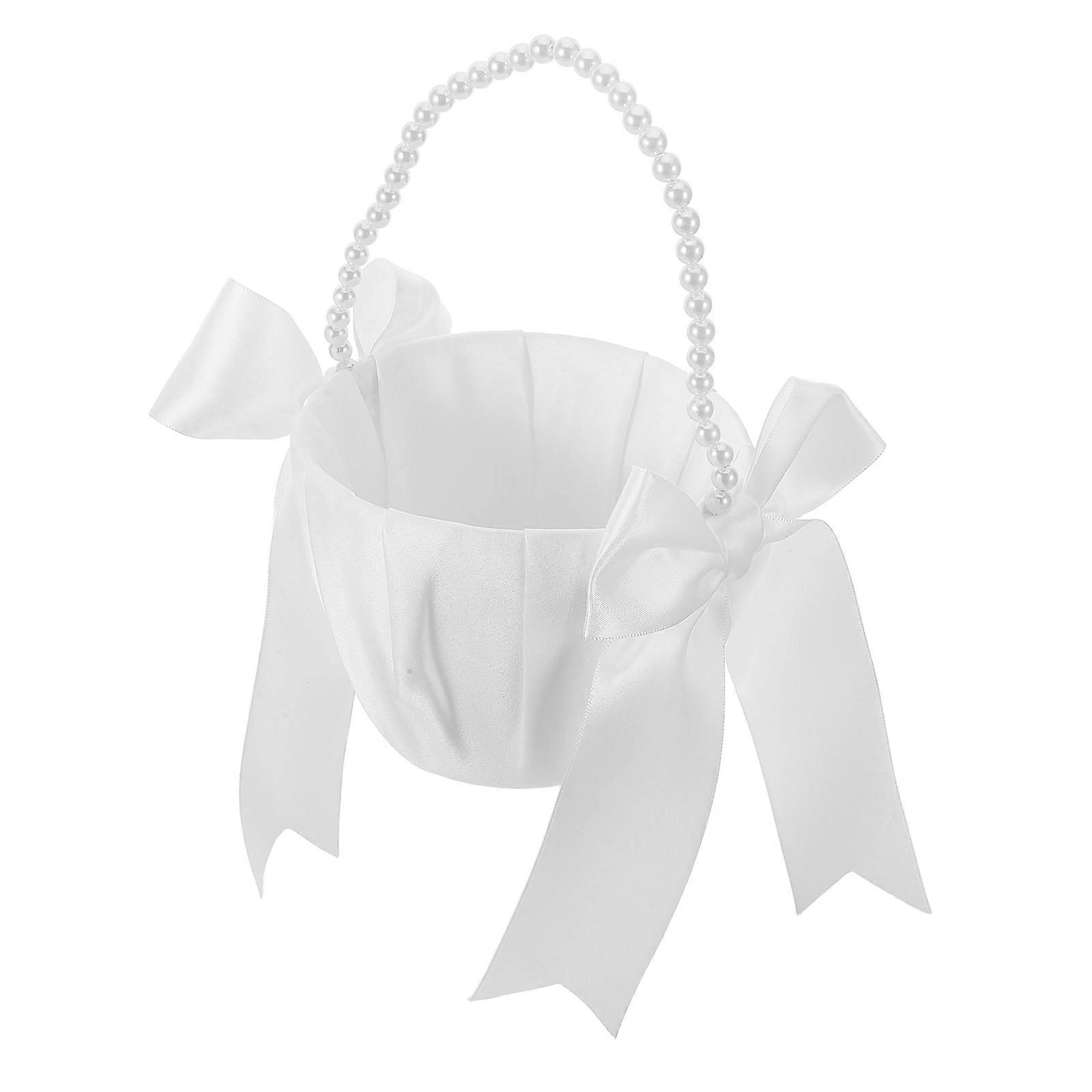 Wedding Flower Basket White Bowknot Basket for Wedding Party