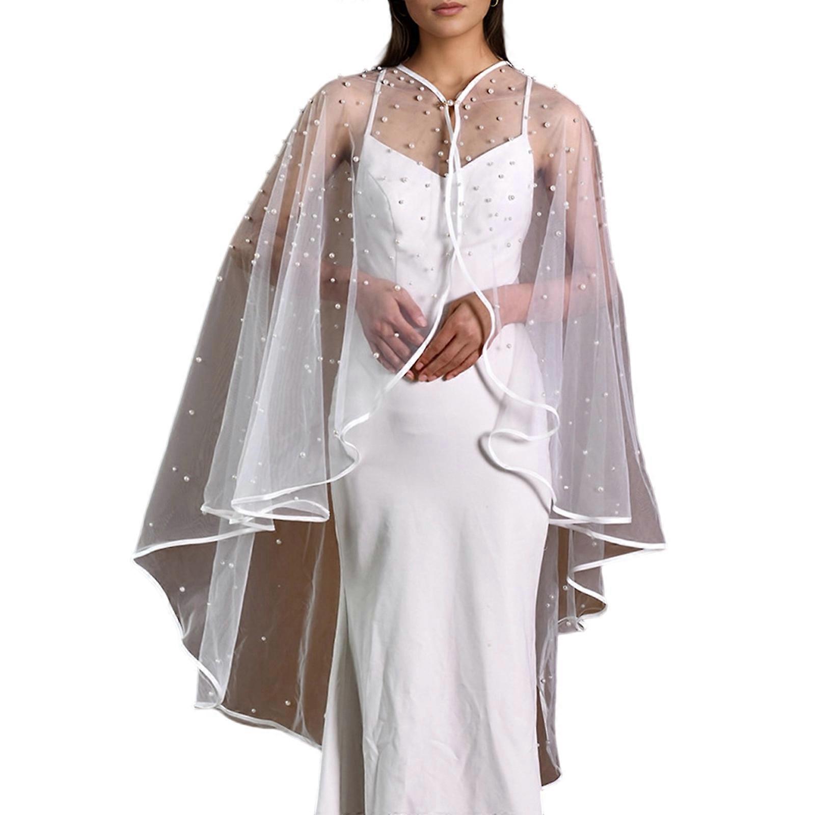 Wedding Shawl for Bride Beadwork Pearls Shawl Wedding Gown Shoulder Wrap Tulle Shawl for Formal Event Special Occasion