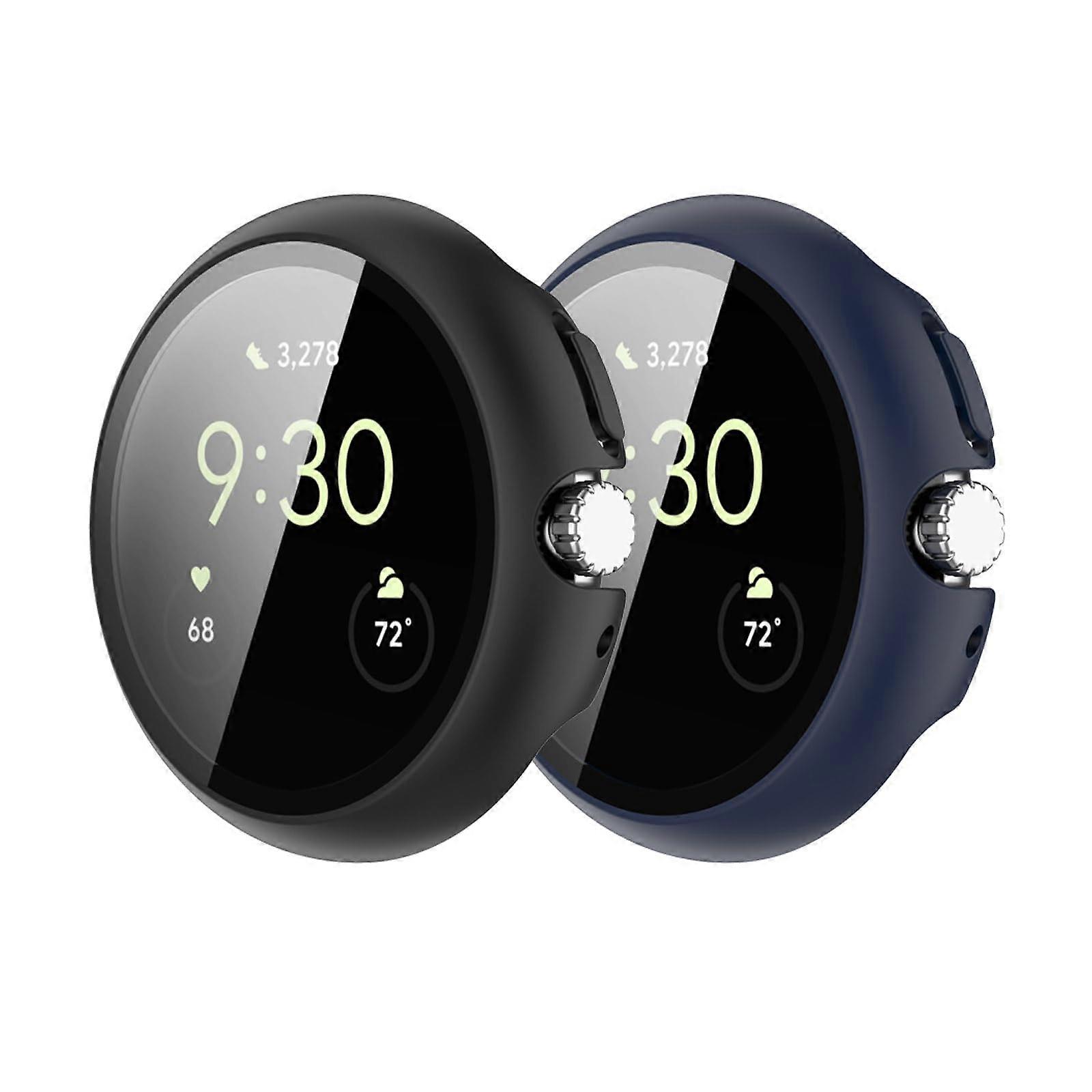 Case with Tempered Glass Screen Protector for Google Pixel Watch 4 41mm, 360° Scratch Protection, Black and Blue