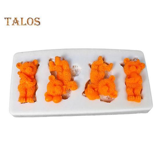 Chocolate Mold High Temperature Resistant Multipurpose 4 Cavity Pretty Bear-Shaped Fondant Cake Mold for Kitchen