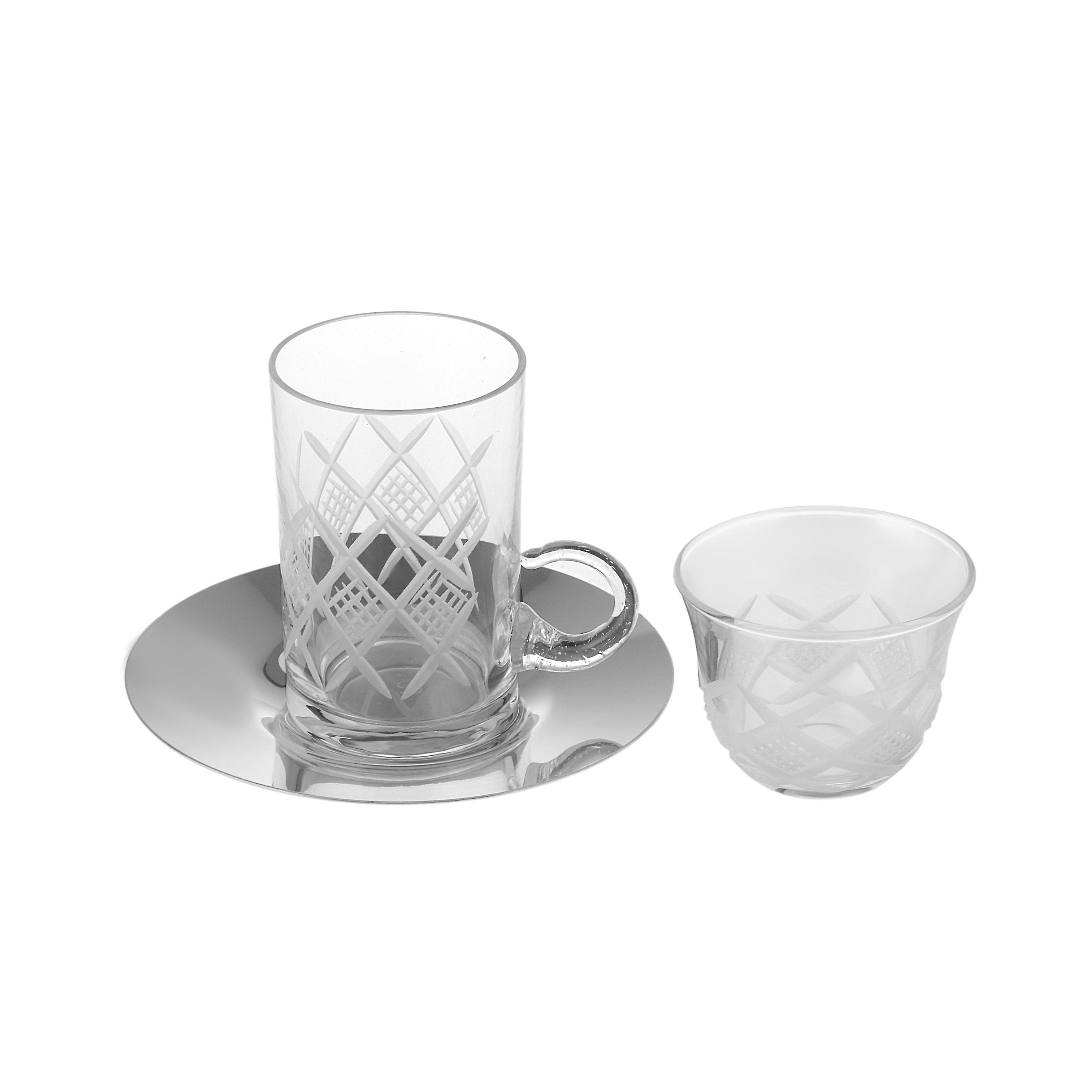 Crystal Diamond Design Glass Turkish Tea Set With Arabic Coffee Hand Craft