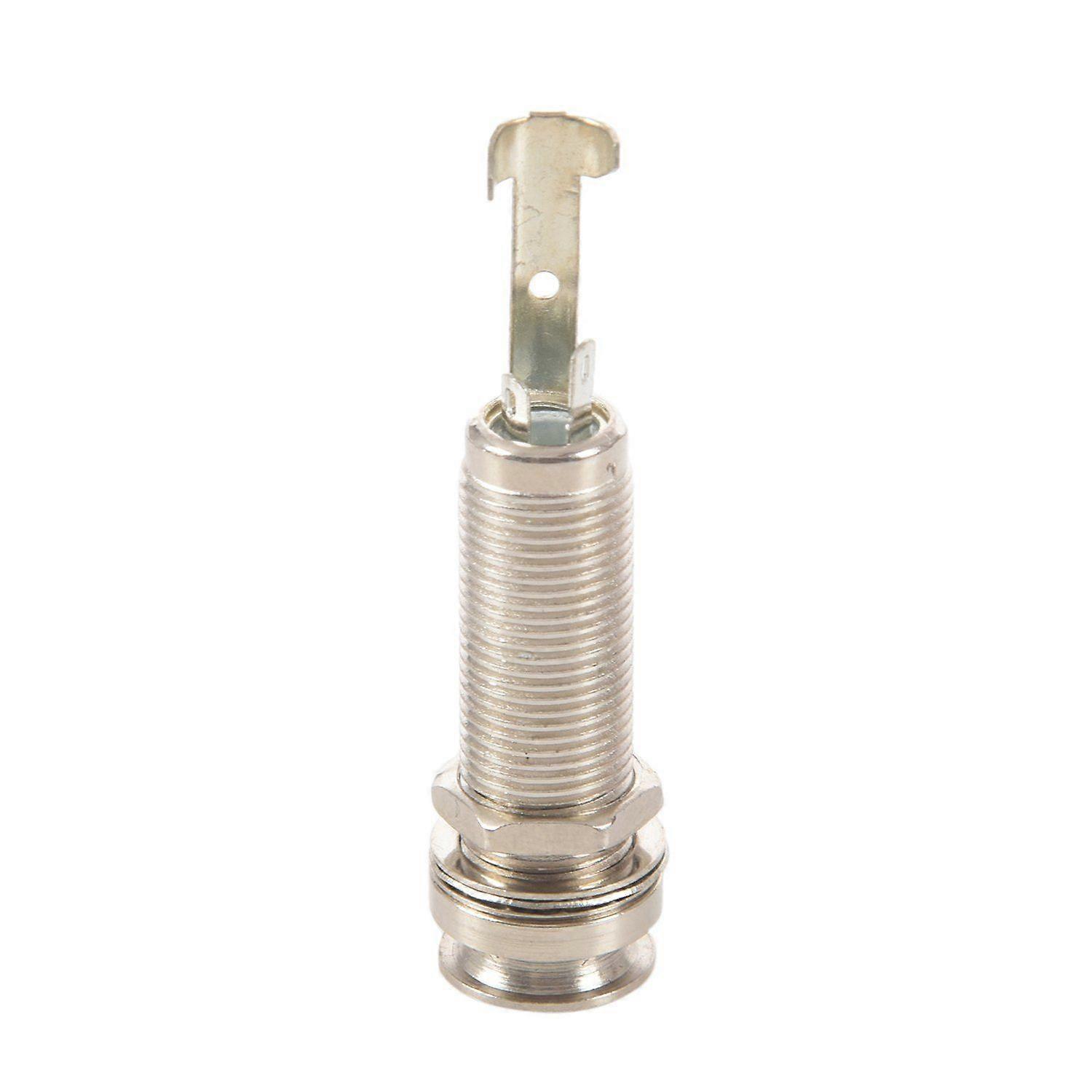 Material: Stainless steel Includes with and a nut 4 (3 live / 1 earth)Mono/stereo terminals Will accept standard 1/4" guitar leads Compatible with most electric guitars Color :As picture show Shape: Cylinder Diameter:6.35mm : 1 pc Package includes: 1 x Cylinder Mount Output Note:Light and different displays may cause the color of the item in the picture a little different from the real thing. The measurement allowed error is +/-1-3cm.