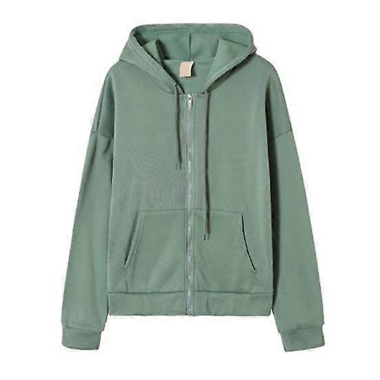 Ladies Fall Winter Coat Solid Color Loose Zip Up Pockets Long Sleeve Drawstring Hooded Elastic