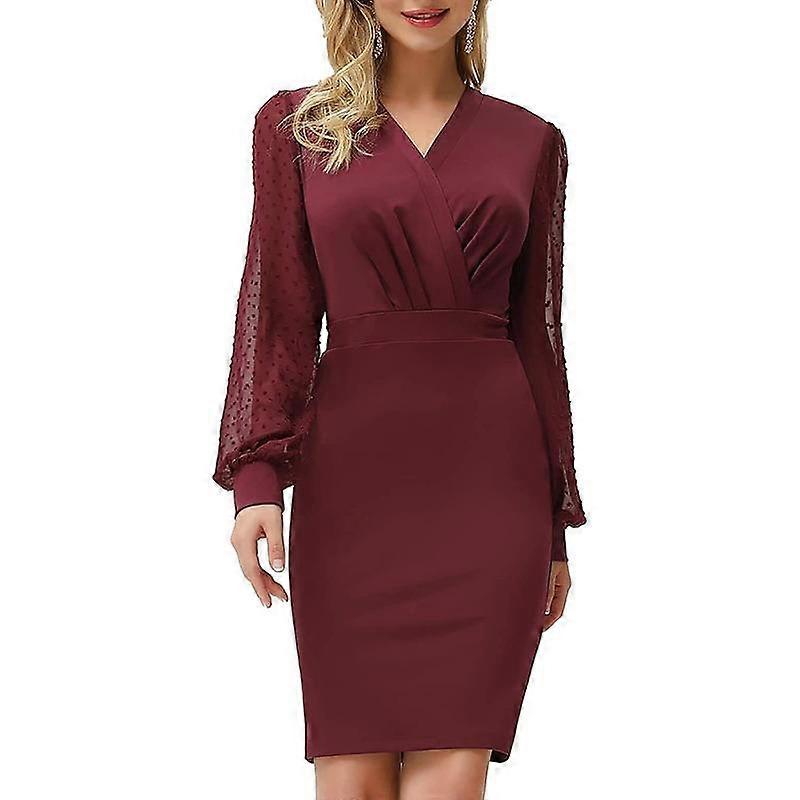 Women's Long Sleeve V-Neck Tight Elegant Splicing Dresses