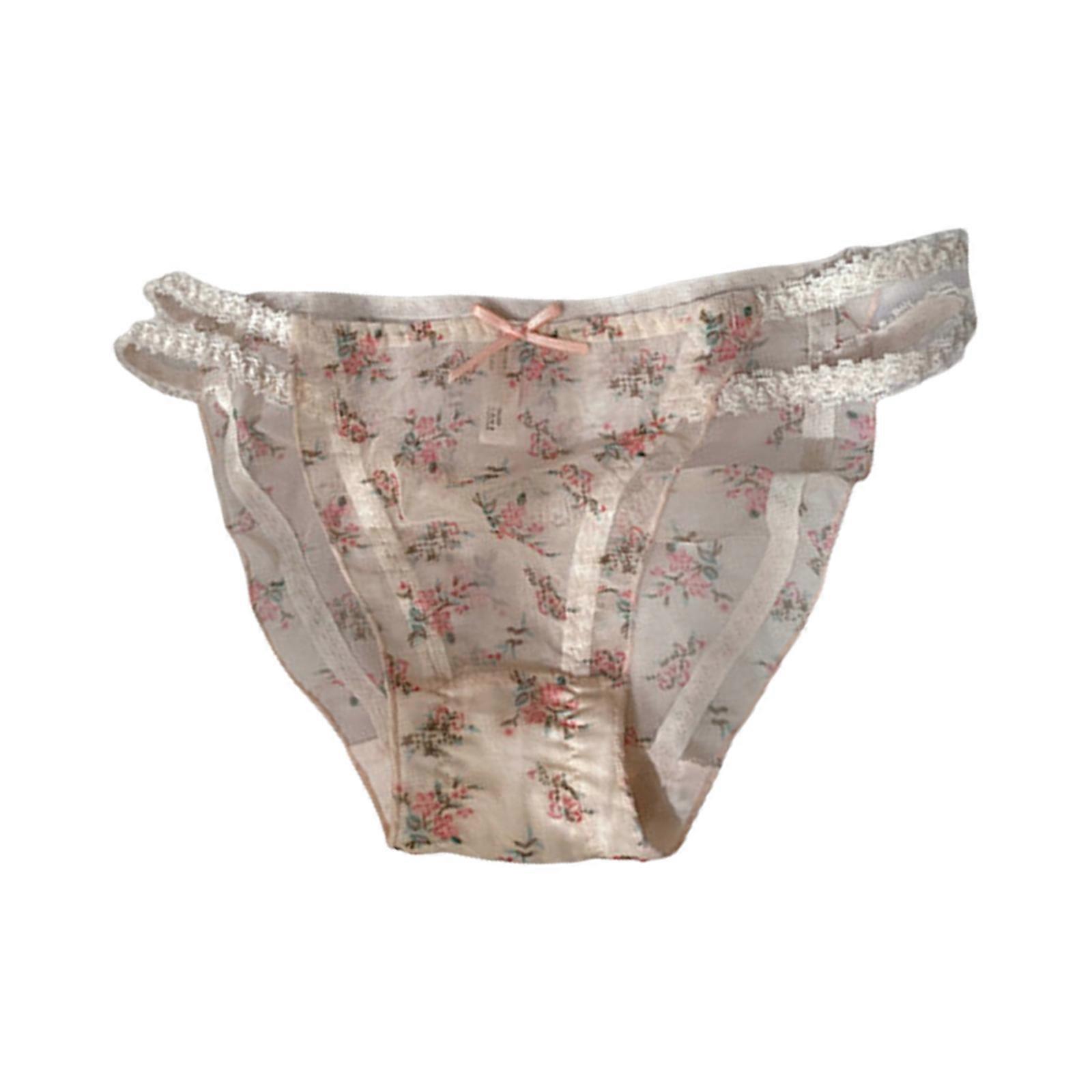Women's Lace Strappy Cut Out Low Rise Hipsters Underwear Sheer Mesh Floral Pattern Panties Sweet Bowknot Lingerie Briefs Yellow M
