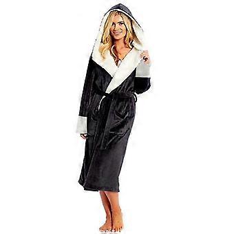 Damer Sammet Badrock Mjuk Morgonrock Huva Fluffig Fleece Towling Badrock